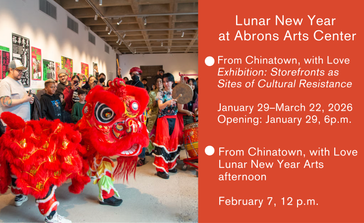 Lunar New Year Arts Afternoon, February 7, 2026, 12 – 4 p.m., in Abrons Arts Center Galleries and Experimental Theater. Learn more and RSVP.
