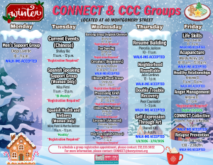 CONNECT (Continuous Engagement between Community and Clinic Treatment) is a health and wellness program that serves our most vulnerable adult communities with mental health care, help finding housing, and employment support in a flexible model that meets clients where they are.